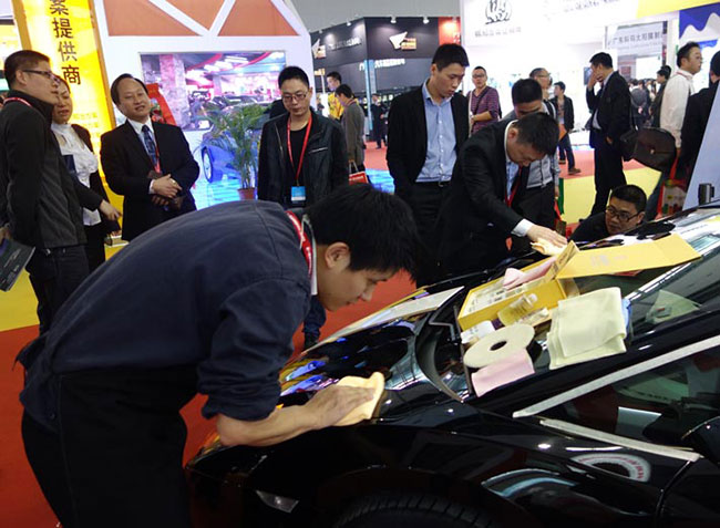 保賜利此次展臺不僅吸引了眾多專業(yè)觀眾,也為眾多客戶現(xiàn)場施工保賜利漆面鍍膜產(chǎn)品—— “保賜利碳晶鍍膜”,演示效果立竿見影,人氣瞬間推至高潮。展會現(xiàn)場,保賜利也悉心為廣大經(jīng)銷商和專業(yè)觀眾安排了一場嘗鮮會,將即將在3月登陸央視的保賜利產(chǎn)品廣告片率先讓參觀觀眾觀覽,并獲一致好評。