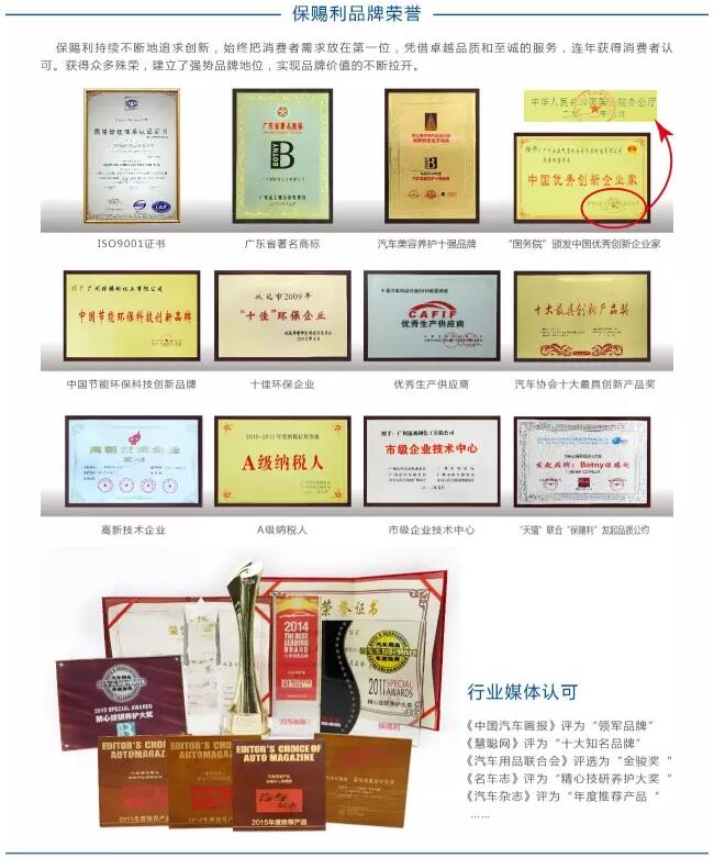 2017年已推出了,汽車空調(diào)蒸發(fā)箱可視清洗套裝、新車蠟、機(jī)動車制動液、無香型表板蠟等數(shù)十款廣受市場青睞的暢銷汽車美容養(yǎng)護(hù)產(chǎn)品。