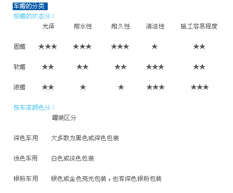 A.根據(jù)車蠟的作用來選擇:比如多雨地區(qū)選用防水性能優(yōu)良的激防水蠟;空氣污染較嚴(yán)重地區(qū)也應(yīng)選用防酸雨功能強(qiáng)的激防水蠟;光照充足的地區(qū)應(yīng)選用防紫外線、抗高溫性能優(yōu)良的車蠟,如保賜利高級(jí)固蠟或高級(jí)激防水蠟。