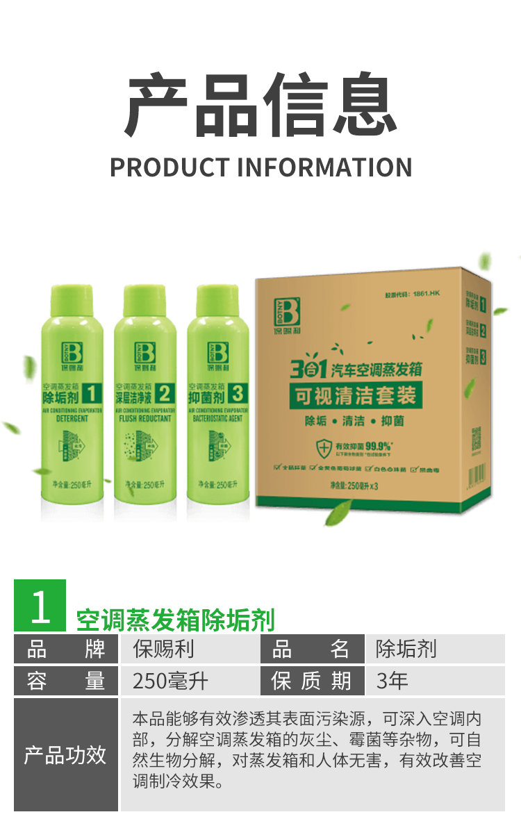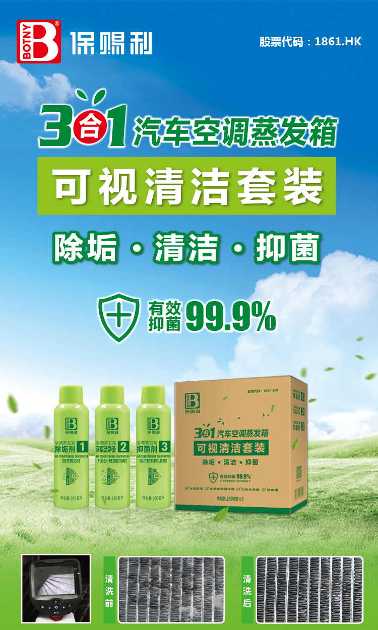 保賜利3合1汽車空調(diào)蒸發(fā)箱可視清潔套裝,有效抑菌99.9%,讓你看得見健康!