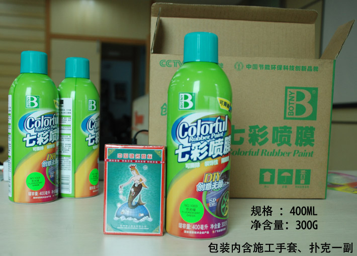 七彩噴膜是一種自然干燥的人造橡膠涂覆層,適用于各種金屬、塑料、木制品等表面,噴涂后可在物體表面形成一種柔韌可剝離的有色薄膜,保護(hù)物體表面,防水、耐磨,多種顏色可選(熒光綠、熒光金黃、熒光藍(lán)、熒光桃紅、熒光紅、熒光橙、熒光紫),具有很好的美化裝飾性。可使用于汽車、摩托車、自行車的金屬構(gòu)件和烤漆表面的改色,也可使用在木材、玻璃、塑料、混凝土、布料、皮制品、陶瓷等需要改色的表面上。